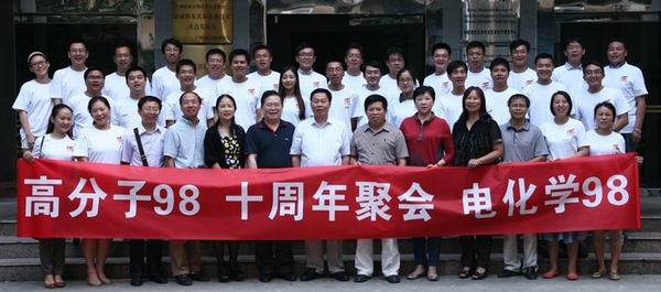 10月3日,借国庆长假之际,高分子电化学专业九八级同学毕业十周年后聚会母校,大家欢聚一堂,共叙同窗情谊,喜迎中秋、国庆佳节,共同追忆昨天、见证今天、展望明天。