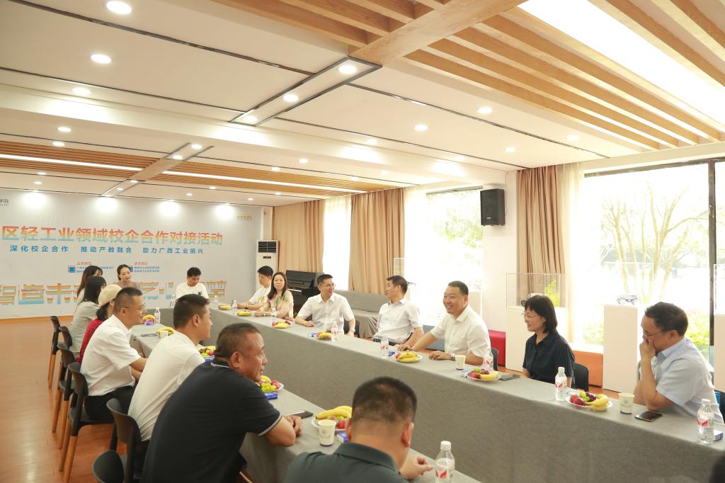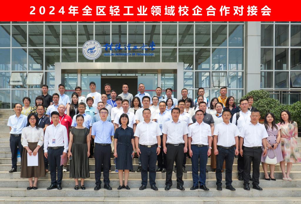 为深化校企合作,推动产教融合,助力广西工业振兴,5月28日,由自治区工业和信息化厅、我校联合主办,桂林市工业和信息化局、我校艺术学院承办的全区轻工业领域校企合作对接会在雁山校区举办。校党委常委、副校长罗盛锋,自治区工业和信息化厅轻工处处长曾祥平,玉林市福绵区党委常委、统战部部长钟枢出席会议。各市工业和信息化局,全区轻工业领域40多家企业,相关兄弟院校,我校党办校办法务办、学工处、科研院、校友与国内合作处、机械与控制工程学院、艺术学院负责人以及毕业生代表等300余人参会。