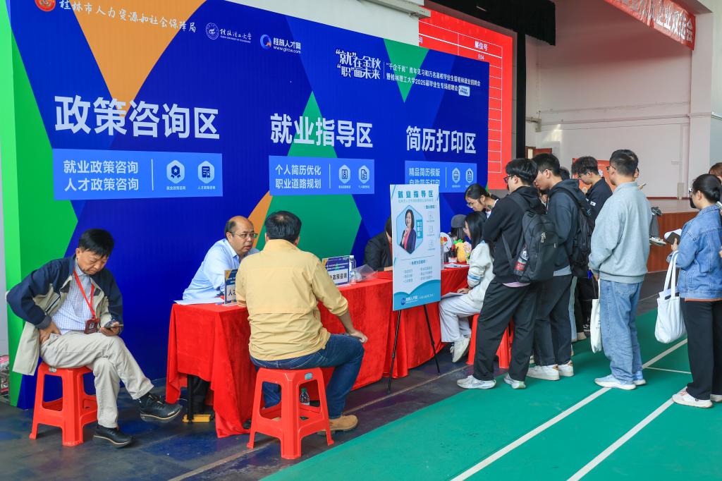 据悉,本次双选会共有148家单位参与,提供岗位机会数4000余个,涵盖计算机、机械、电子、新能源、地质、建筑、教育、金融、餐饮等多个领域,其中阳江市人社局、佛山市人力资源公共服务中心、南昌市青云谱区人社局、桂林市人社局带队进校招聘,吸引2000余名学生参加。此次招聘会适逢学校建校68周年校庆日,一批校友返校参加校庆活动的同时,带队参加双选会,积极选聘学校毕业生。活动现场气氛十分热烈,毕业生与用人单位从容交流,详细了解招聘需求、福利待遇、发展空间和企业文化等信息,积极投递简历,充分展现桂工学子勇于进取的精神面貌。