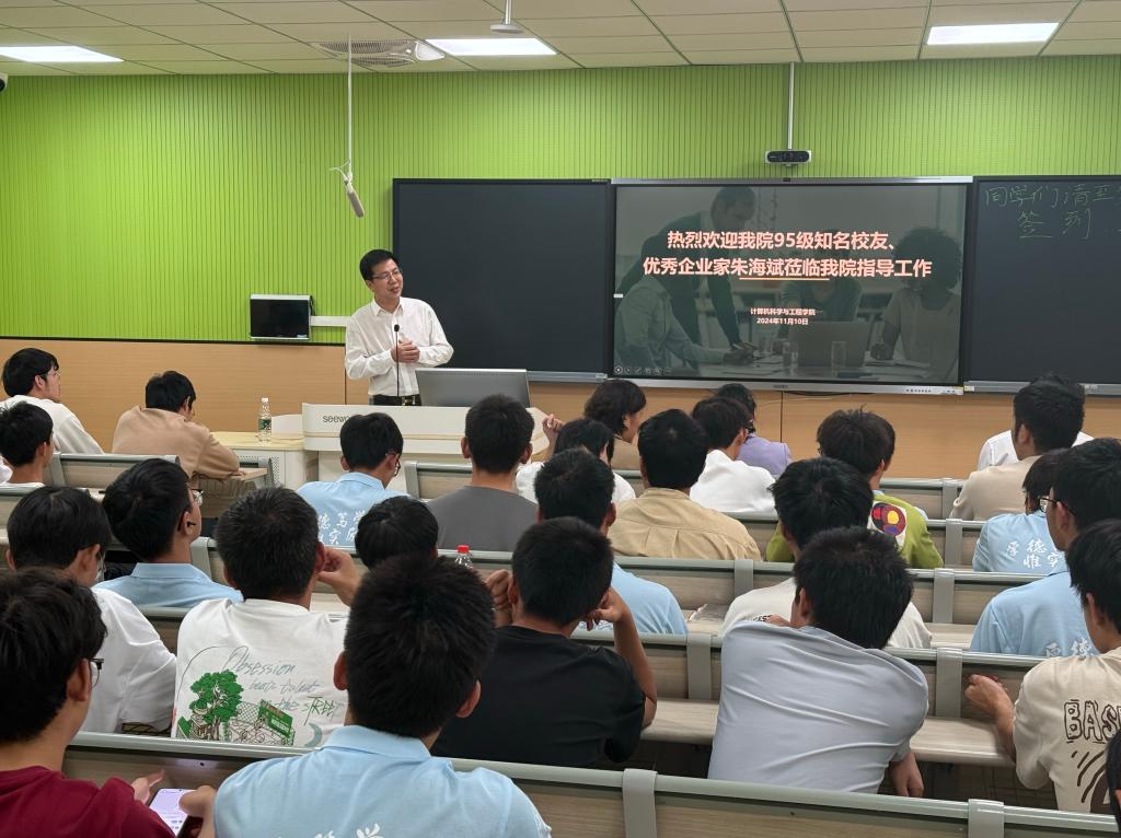 讲堂上,朱海斌校友对学校、学院近年来的发展变化给予肯定,他结合自身成长,回顾了个人的求学经历和职业发展,讲述了面对行业变革时的思考和决策过程,分享了在择业、创业过程中的经验和心得。同时他鼓励学弟学妹们要树立远大理想,明确发展方向,保持好奇心和探索精神,不畏挑战,勇敢追梦,将个人奋斗融入新时代的伟大洪流,在建功立业中实现人生价值。在互动交流环节,同学们踊跃发言,提出自己在学习、生活以及对专业的困惑,朱海斌校友一一进行了解答并给出了意见建议,现场气氛活跃热烈。