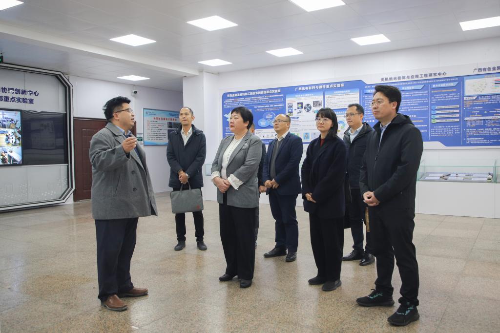 会前,潘雪红一行实地考察了我校广西光电材料与器件重点实验室、有色金属及材料加工新技术教育部重点实验室和商学院管理科学实验中心。