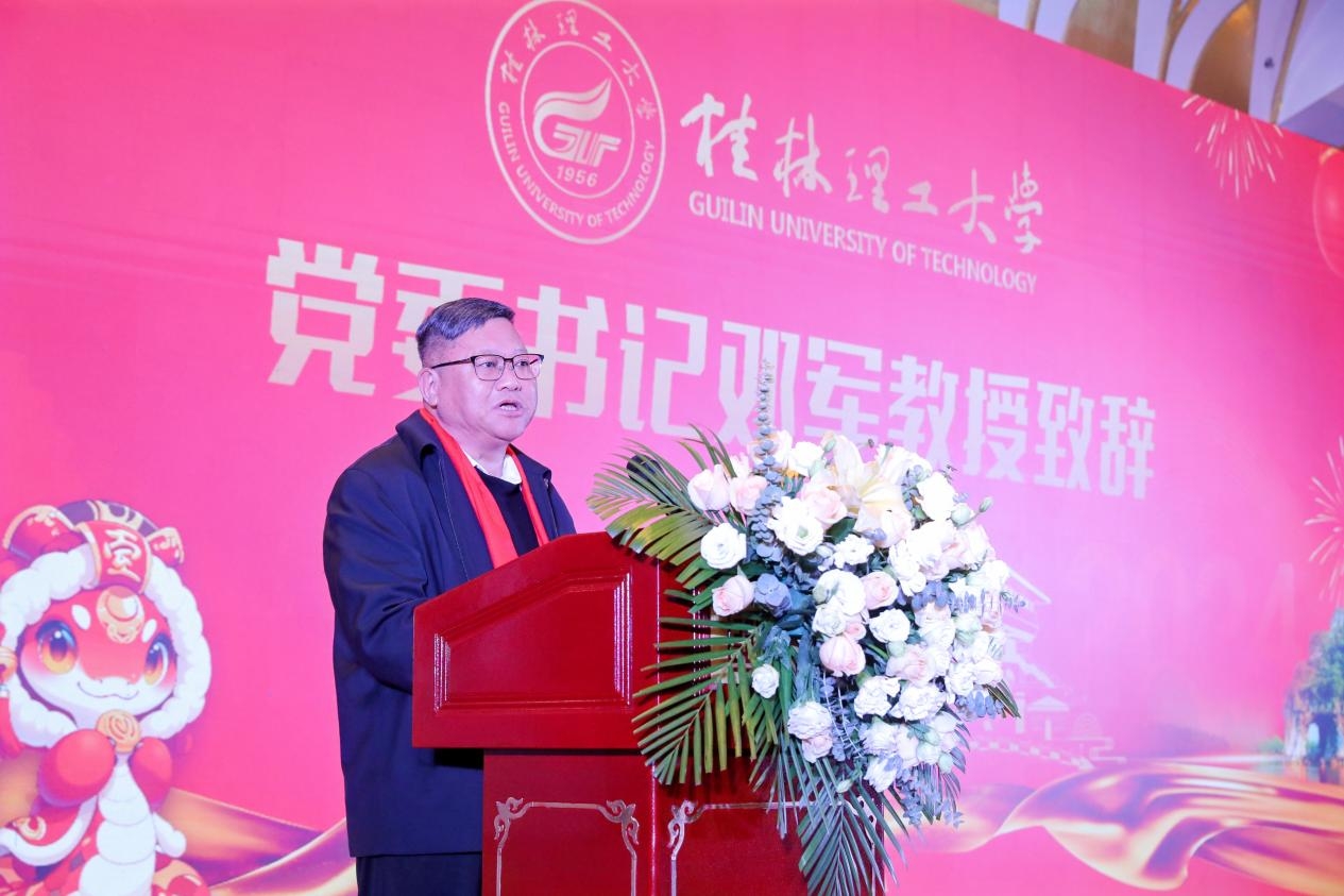 邓军对年会的召开表示热烈的祝贺,并简要介绍了学校的发展情况。他指出,母校是校友温暖的精神家园,校友是学校发展的宝贵财富。2026年是学校建校70周年,是学校改革发展的重要契机。他强调,学校正在研究谋划部署70周年校庆筹备工作,力求全面展示新时代英国上市公司365的新气象新面貌。母校将以筹备70周年校庆为契机,积极联络海内外校友,汇聚各方资源,共同为母校高质量发展注入新的动能。他希望桂林校友能敏锐洞察桂林地区发展的新机遇与新趋势,打造独具特色、充满活力的校友经济创新生态圈。进一步发挥“校友圈”的聚合效应,以70周年校庆为契机,积极促进校友之间的信息互通、资源共享以及情感交流,营造一个团结互助、共同进步的良好氛围,实现校友之间的互利共赢,共同向着更高远的目标开拓奋进。希望广大校友能够深度参与校庆筹备工作,为校庆活动出谋划策,提供各类资源支持,与母校携手打造高质量发展共同体,助力母校在新的征程中不断迈向新的高峰。