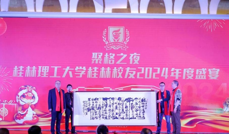 元日将临的桂林满溢朝气,校友的情谊源远流长。12月29日,桂林校友2024年度盛宴在大公馆举行,学校党委书记邓军,党委副书记、校长王敦球,党委常委、副校长王磊,党委常委、副校长罗盛锋、桂林航天工业学院党委常委、副校长张烈平,桂林旅游学院原校长程道品,学校校务委员会副主任、原副校长陈学军,学校校务委员会副主任、原副校长梁福沛出席年会,学校党办校办法务办、宣传部、校庆办主要负责人与地方单位代表、校友代表200多人齐聚一堂,共享欢聚之乐,共话情谊与发展。
