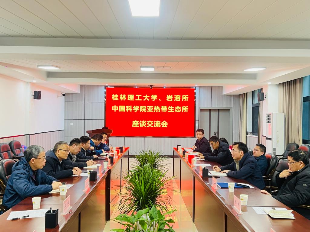 为扎实推进校企战略合作项目落地见效,2月13日下午,学校党委副书记、校长王敦球,党委常委、副校长黎贞崇一行会同中国地质科学院岩溶地质研究所赵小明副所长(主持工作)等前往中国科学院亚热带农业生态研究所访问交流,中国科学院亚热带农业生态研究所所长陈洪松,研究所学术委员会主任、原党委书记、环江站站长王克林等热情接待了王敦球一行。