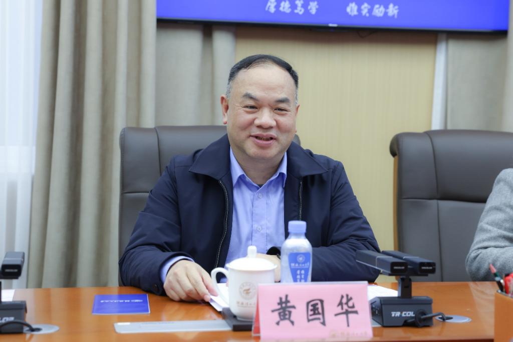 黄国华对我校的热情接待表示感谢,并简要介绍了广西地震局发展情况以及近年来在地震监测、灾害预警、应急管理等方面的工作成果。他表示,广西地震局正积极贯彻落实习近平总书记对广西重大方略要求,一直致力于提升地震监测预警能力,但在科技创新、数据分析和专业人才储备方面仍存在一定短板。他希望与会各方以此次签约为契机,进一步深化交流合作,充分发挥学校科技资源和人才优势,在地质调查、地球物理勘探、深部构造环境探测、震害预测等领域项目上取得更深入的合作,携手推动广西防震减灾工作迈上新台阶。