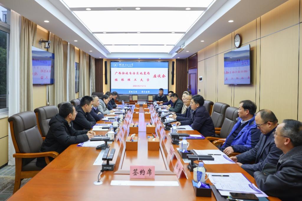 2月27日下午,广西壮族自治区地震局党组书记、局长黄国华一行来访,就科技创新、校企合作等事项与我校开展座谈,并与我校签署战略合作协议。学校党委副书记、校长王敦球在屏风校区办公楼第一会议室热情接待了来访客人。会议由学校党委常委、副校长王磊主持,相关职能部门负责人、地球科学学院党政领导班子成员、教师代表参加了会议。