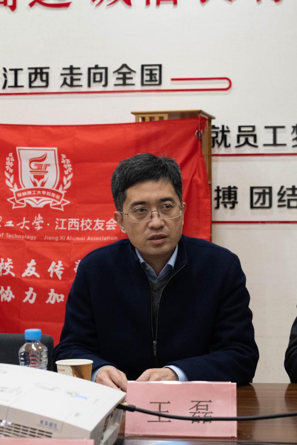 王磊对新一届组织机构成员表示祝贺,并对上届理事会为校友会的付出表示感谢。他介绍了学校近况,指出校友是母校宝贵财富与发展的关键力量。2026年学校将迎来70周年校庆,他希望江西校友会借此契机汇聚校友力量,共谱母校华章。随后,王磊为新任会长颁发聘书、授旗和赠送母校文创纪念品。