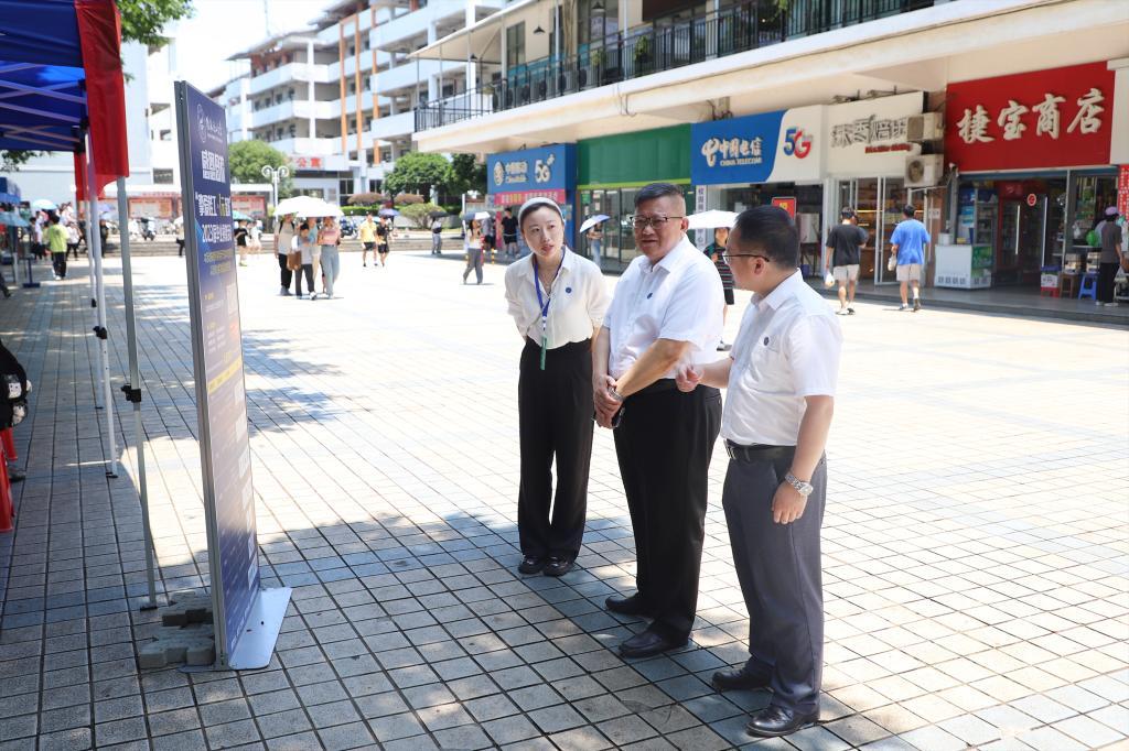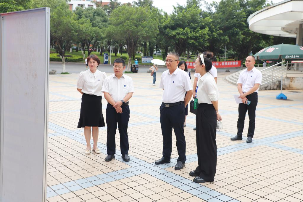 学校党委副书记、校长王敦球(右二),学校党委常委、副校长邓国彬(左二)现场指导毕业季捐赠活动
