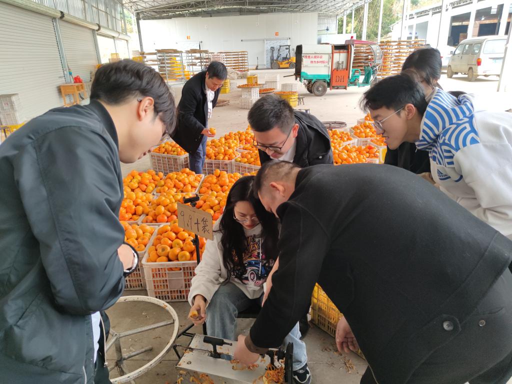 当天下午,考察组一行还前往平乐柿子种植基地和柿饼生产加工基地进行调研并体验柿饼加工过程。基地负责人介绍:平乐县作为全国最大的柿饼交易市场,目前全力规划建设国家级柿子现代农业产业园,引进优秀的加工工艺与先进的加工设备,提高柿子加工产品品质,延长柿子加工产业链。
