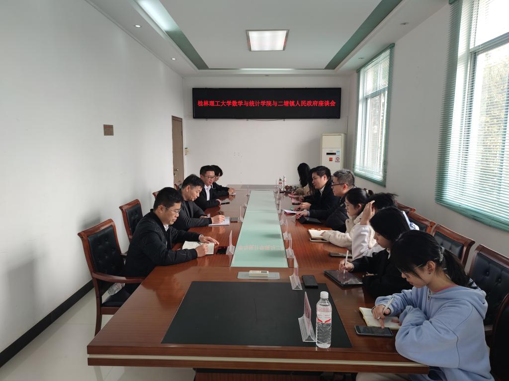 12月12日,数学与统计学院院长蒋远营、学院党委副书记钟立军、学院团委副书记彭娇娇带领学院学生一行10人前往桂林平乐县二塘镇考察交流。平乐县二塘镇党委副书记谢万富(2018届统计学校友、)以及2021届应用统计学毕业生、平乐县委组织部干部伍自豪等热情接待了考察组一行。