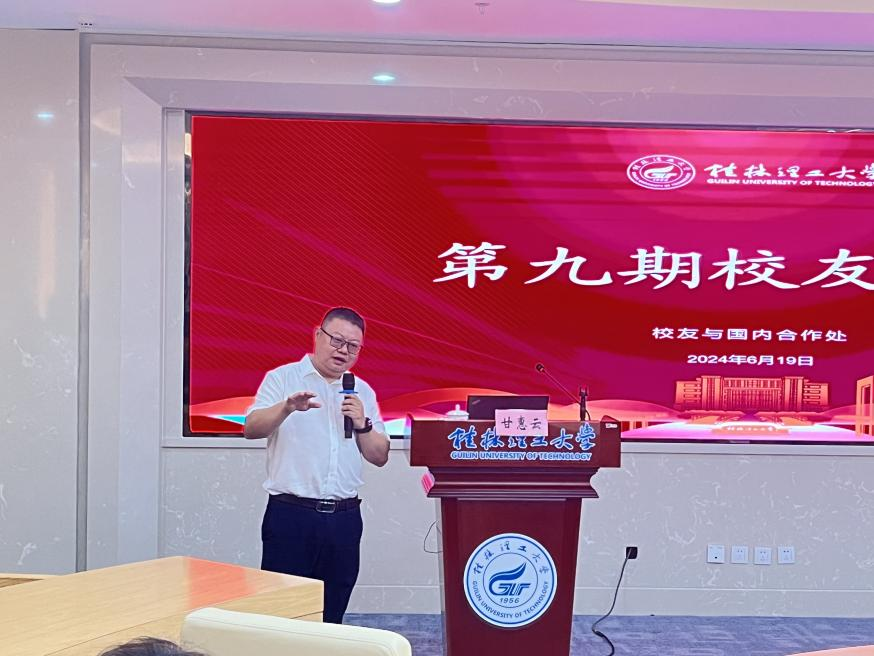 6月19日上午,我校2002届环境工程专业校友、“双百计划”参与者、南宁校友会会长、广西新桂环保科技集团有限公司、广西新百桂科技有限公司创始人、甘惠云应邀返校做客校友讲堂。