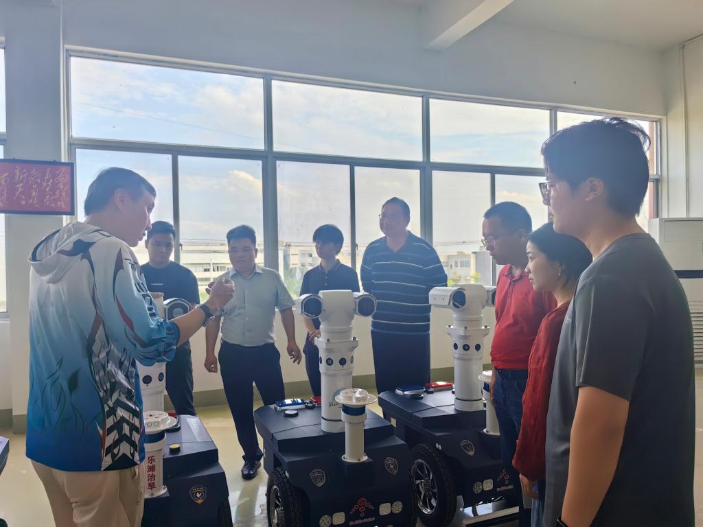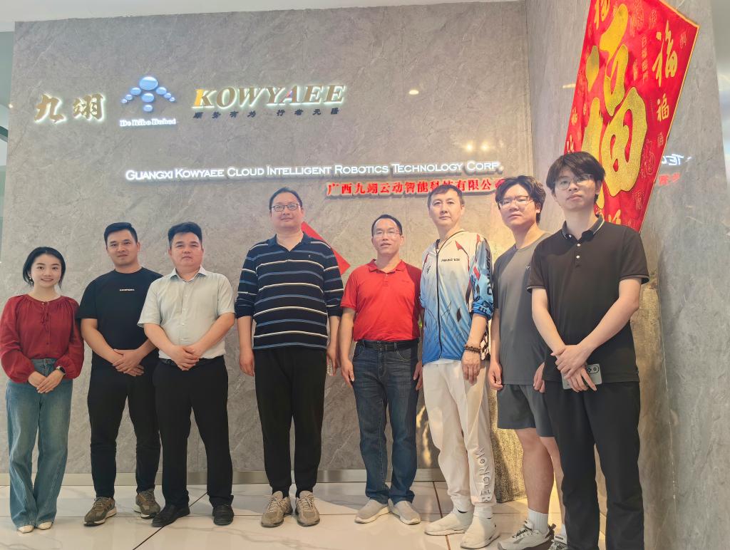 广西九翊云动智能科技有限公司是一家主营智能机器人的研发、特殊作业机器人制造和智能机器人销售的企业。活动伊始,公司董事长夏景禹热情接待并带领校方一行参观研发中心、生产车间,全方位展示企业产品研发流程、技术创新成果与生产运营状况。座谈会上,夏董详细介绍了公司的发展历程、业务布局与人才需求,强调行业发展对复合型人才的迫切需求,期望学校强化实践教学,提升学生解决实际问题的能力。谢海主任介绍了学院人才培养模式、就业情况,表达将企业需求融入教学的意愿,同时提出在挑战杯产业命题赛道开展合作,实现校企共赢。双方还就就业实习、产学研合作等达成了多项合作意向。随后,谢海主任一行5人与我校来宾市校友会会长、信科08级毕业生罗东军、12级校友龙新亮围绕学院人才培养、学科建设进行了座谈。
